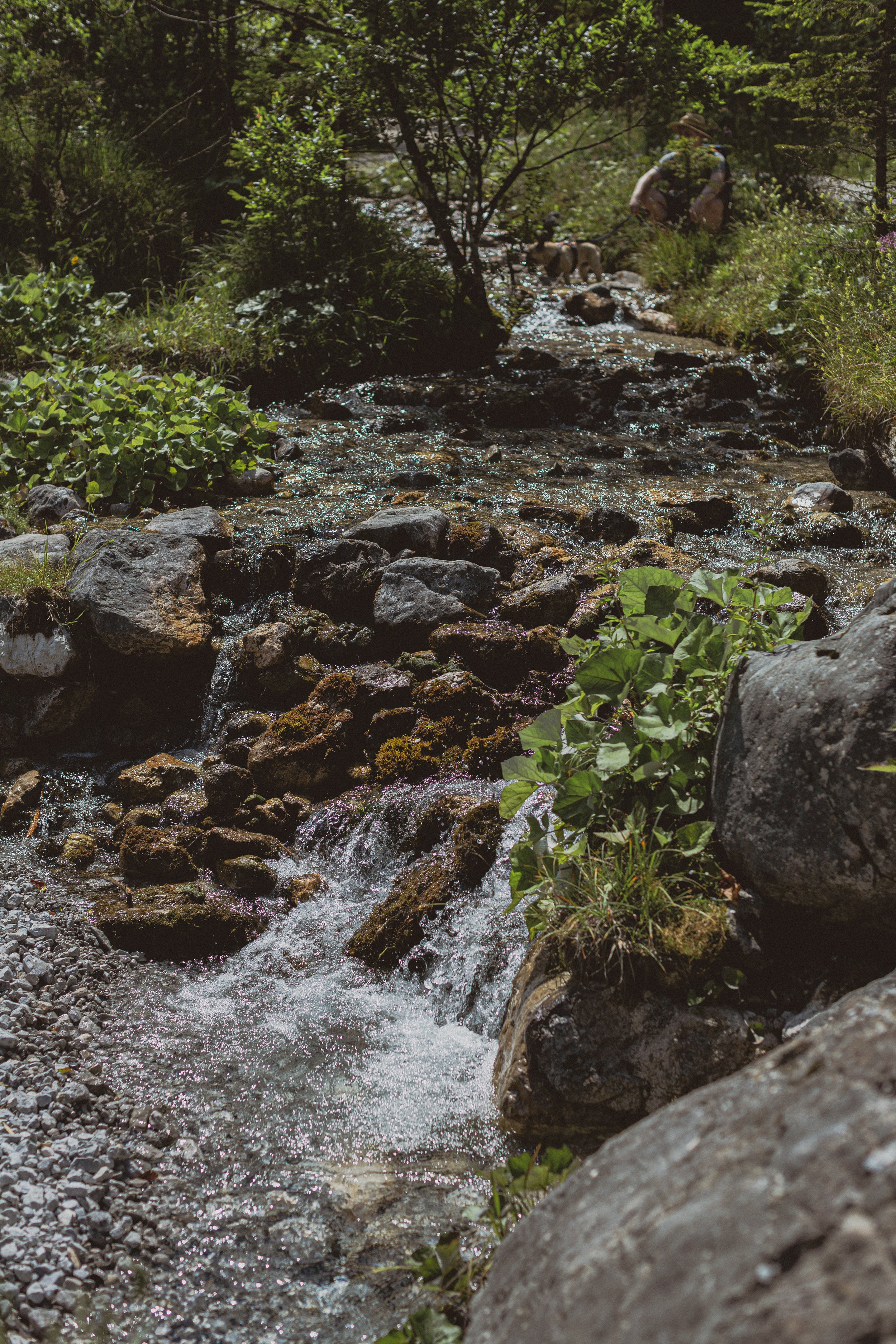Am Hintersee angekommen, wurde der Tag noch schöner. Das eiskalte, blaue Wasser erfrischte unsere Füße und auch Atlas traute sich bis zur Höhe seiner Männlichkeit in das klare Nass.