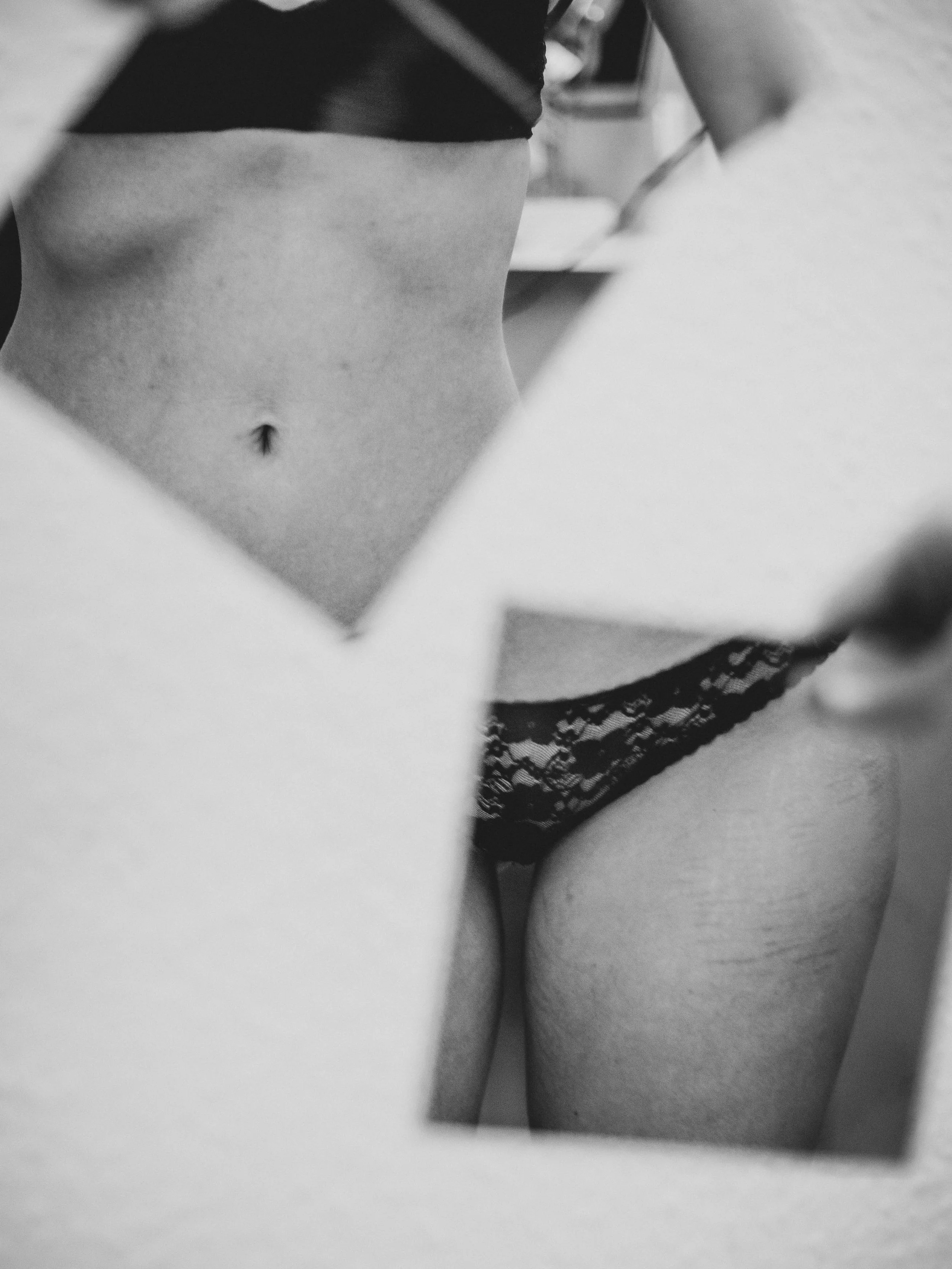 Wenn ich in den Spiegel schaue sehe ich einen verschrobenen Körper der aussieht als hätte ihn ein Verrückter zusammen gebastelt. Wie Frankenstein’s Monster sehe ich Beine die nicht zum Bauch passen, wie von einem anderen Körper sind sie an mir dran. Arme die absolut proportionsverkehrt sind als wären sie von Picasso gemalt worden. Ein Gesicht das einer heruntergefallenen Pizza gleicht, alles ist am falschen Ort und nichts ist gleichmäßig. Moment, plötzlich sehe ich 20kg schwerer aus und meine Hüften haben sich gerade innerhalb von 20 Sekunden verbreitert wie bei einem Ausziehtisch. Und selbst Frankenstein’s Monster sieht dann doch noch normal aus.