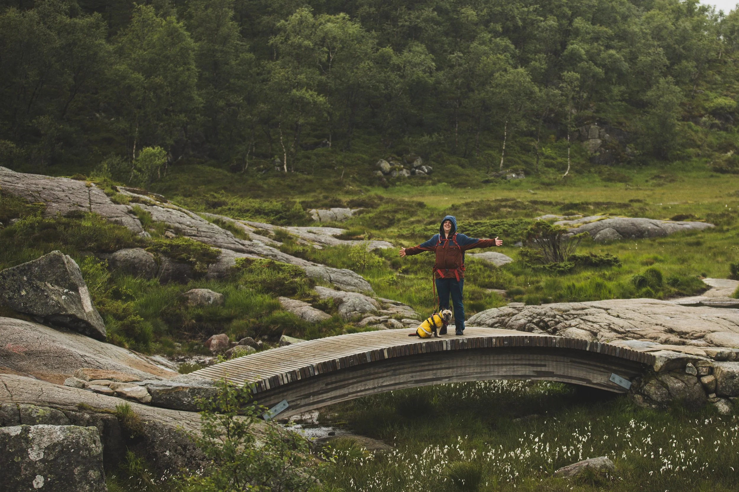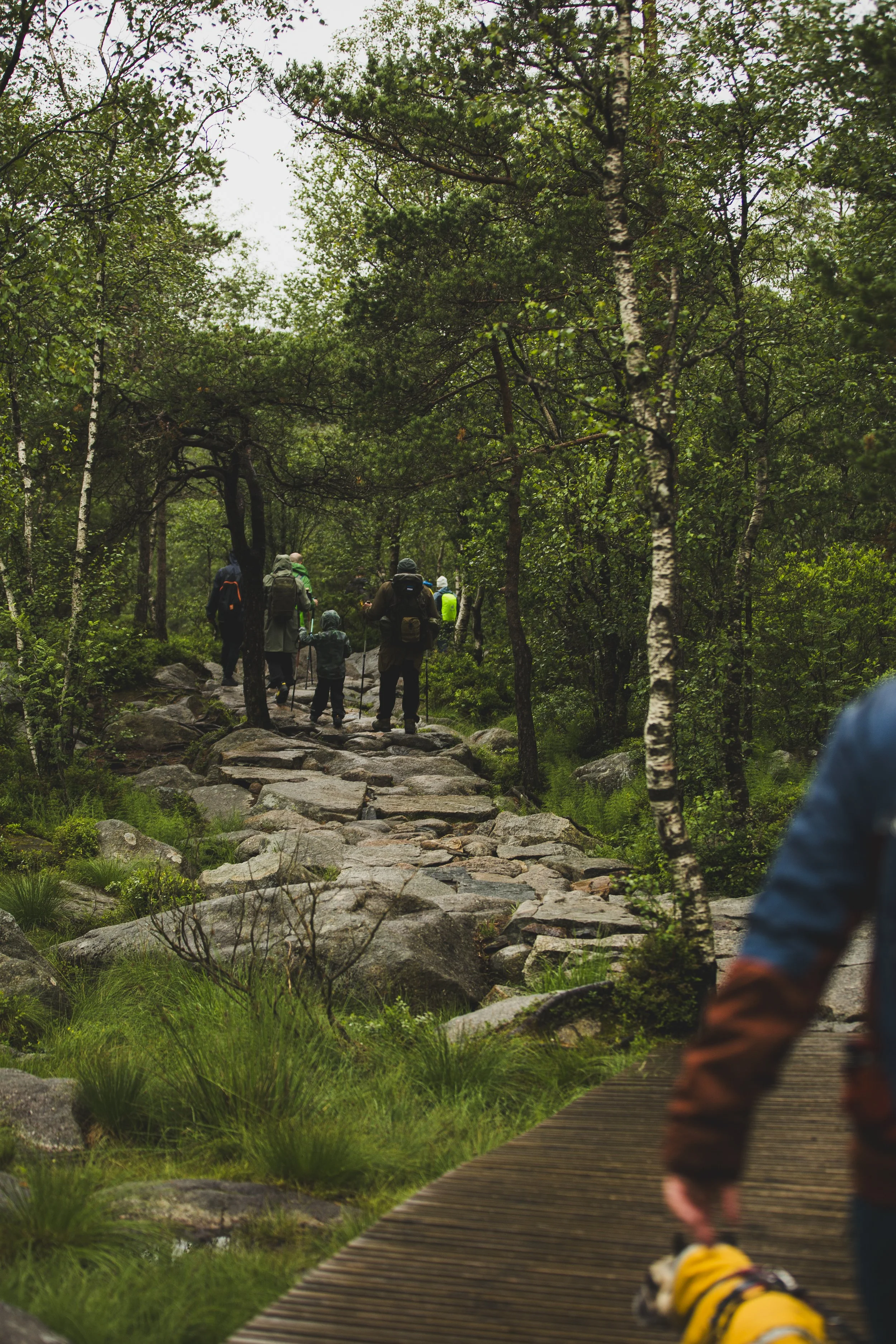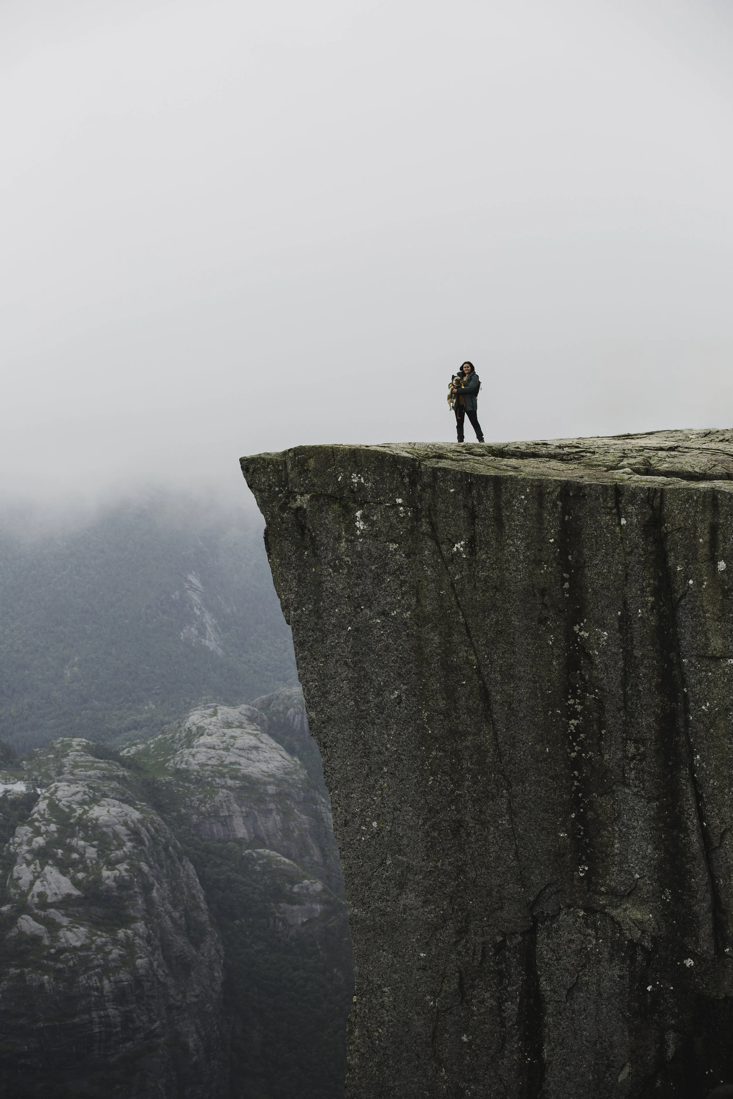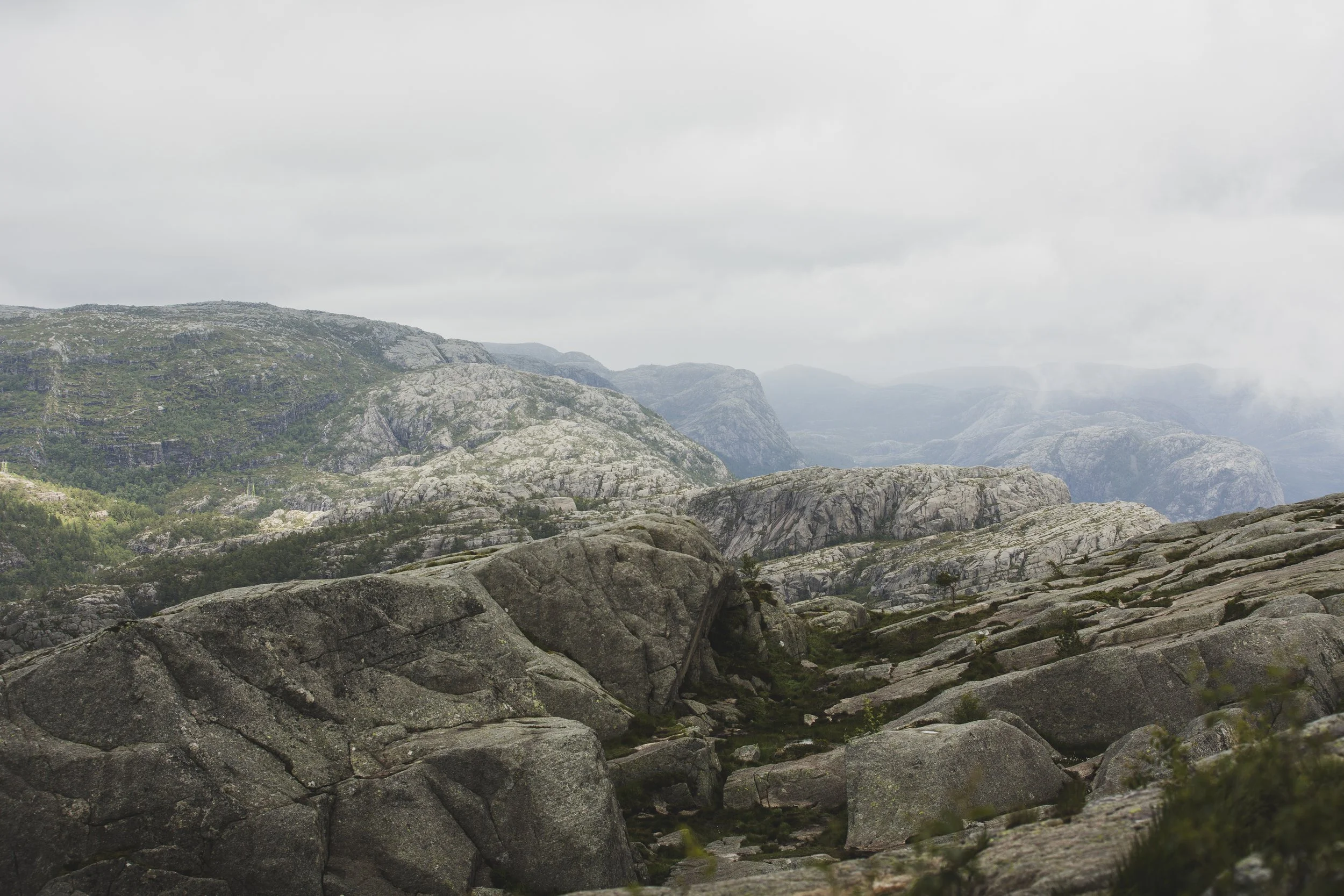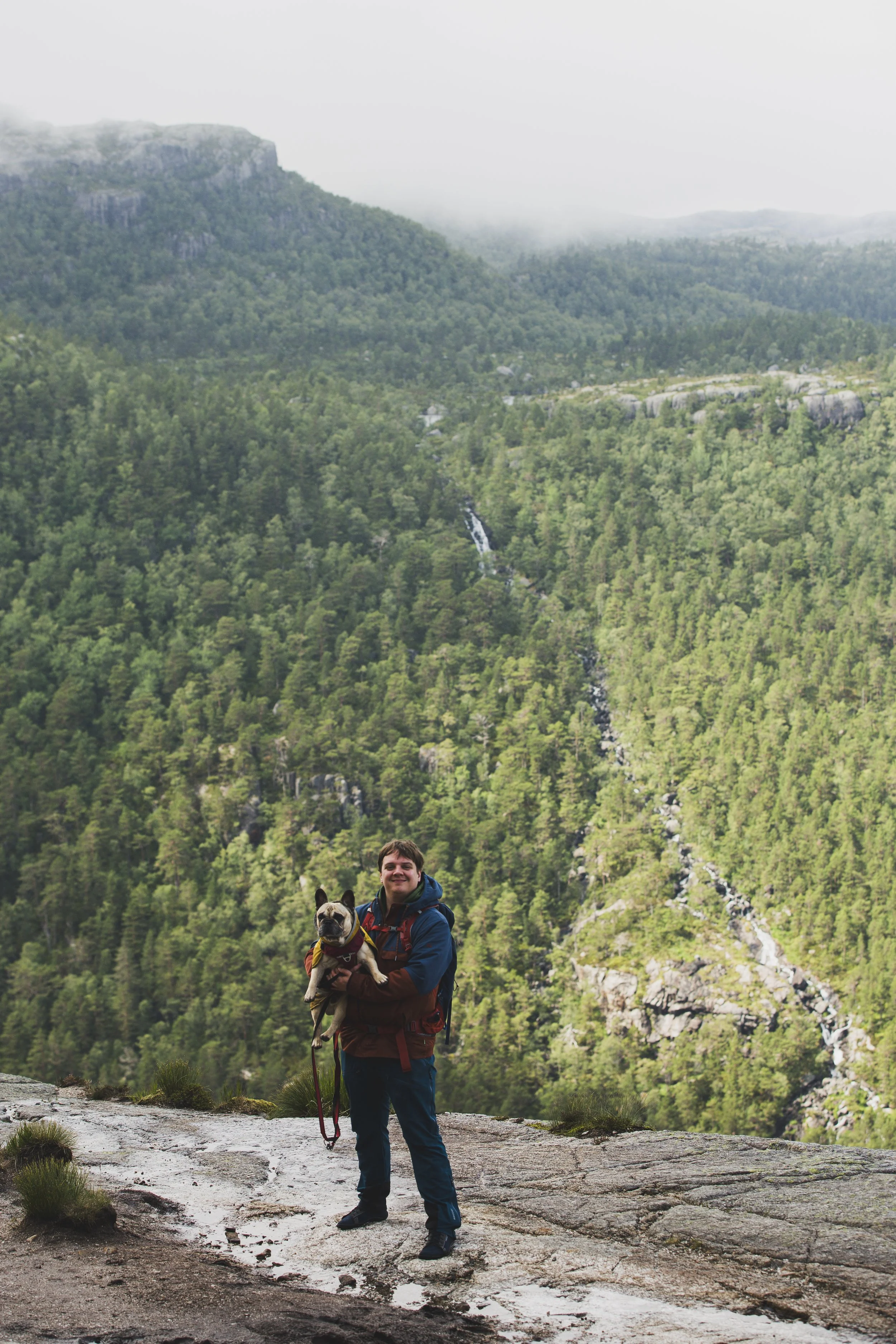 Der Preikestolen ist ein natürliches Felsplateau, das in 604 Metern Höhe über den Lysefjord herausragt. Wir wussten, es würde voll werden, da es sich um eine beliebte Touristenattraktion handelt. Selbst Menschen mit Gehstock und anderen Laufeinschränkungen kletterten die knapp 4 Kilometer rauf und natürlich auch wieder runter. Tatsächlich war es aber mal wieder ein wahres Phänomen, zu sehen, wie viele Reisebusse massenhaft Menschen ankarrten. Hier bedarf es viel Geduld, denn die Nettigkeiten gehen flöten, wenn Menschen sich eine Weile sportlich betätigen und es nicht so läuft, wie sie es gerne hätten. Also warteten wir immer geduldig, wenn uns Leute überholen wollten, mussten ausweichen, wenn die Menschen vor uns plötzlich stehen blieben, und brauchten extra starke Nerven, wenn manche ihre Hunde nicht unter Kontrolle hatten und diese wie wild an der Leine umherrissen. Es ist kein Wunder, dass an diesem Felsvorsprung auch mal Leute ihr Leben verlieren. Denn wie schon erwähnt: Manche Menschen werden ungeduldig und dann auch unvorsichtig. Auch wir haben ein paar Leute beobachten können, die wirklich fragwürdige und waghalsige Aktionen machten, nur um schneller voranzukommen.