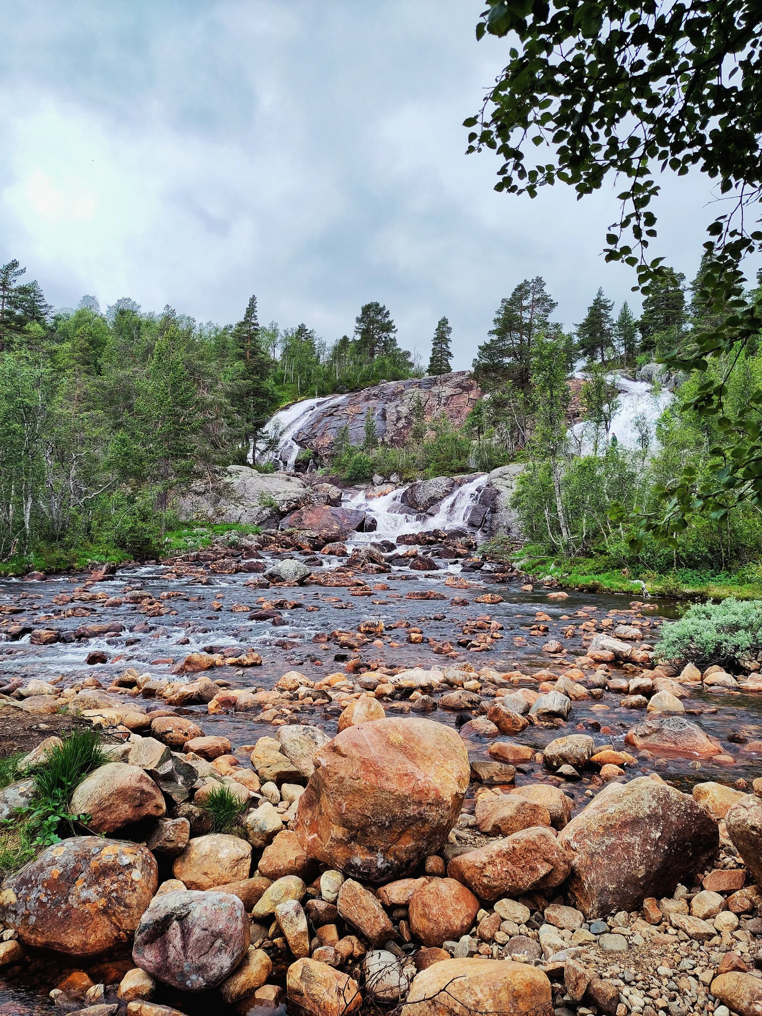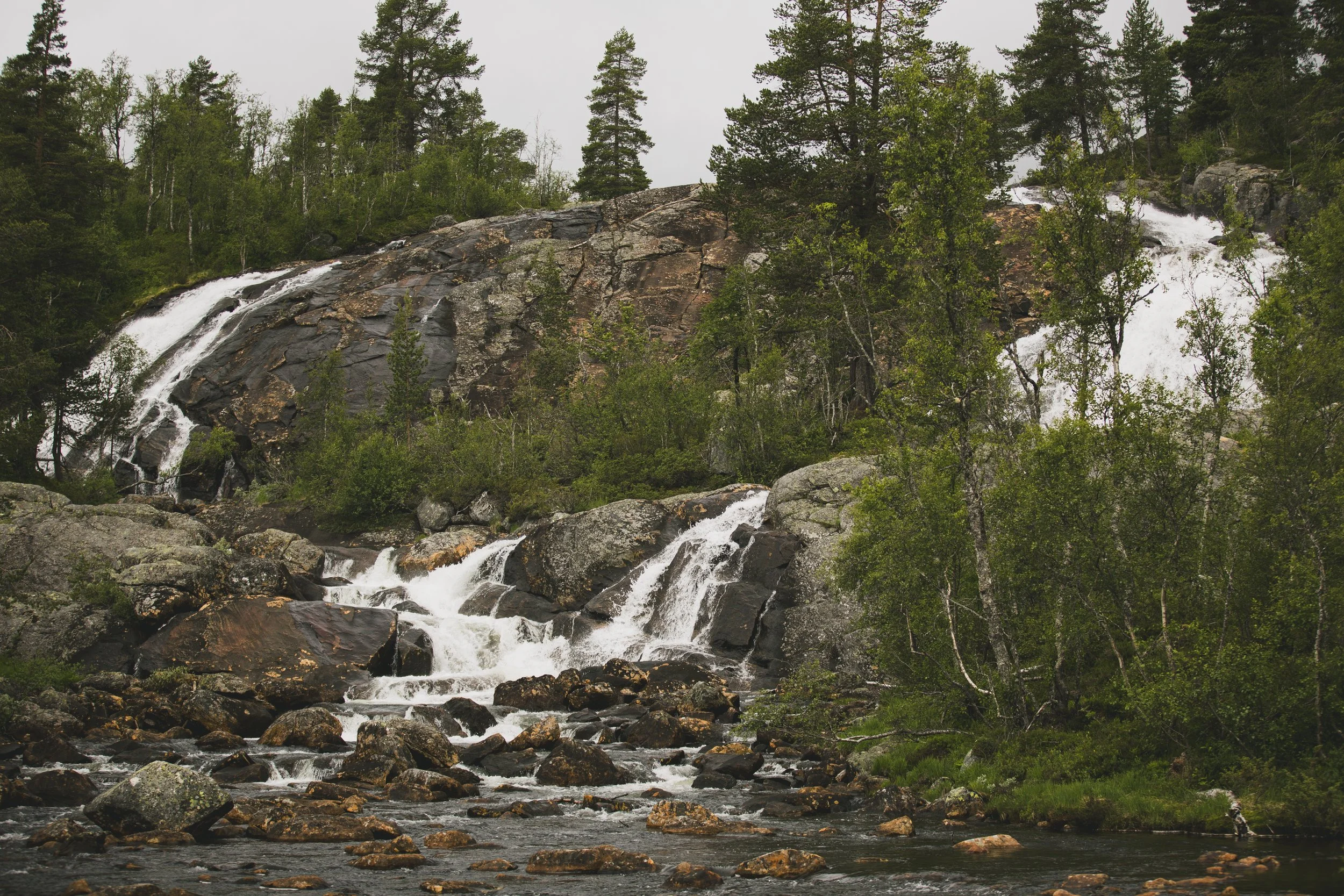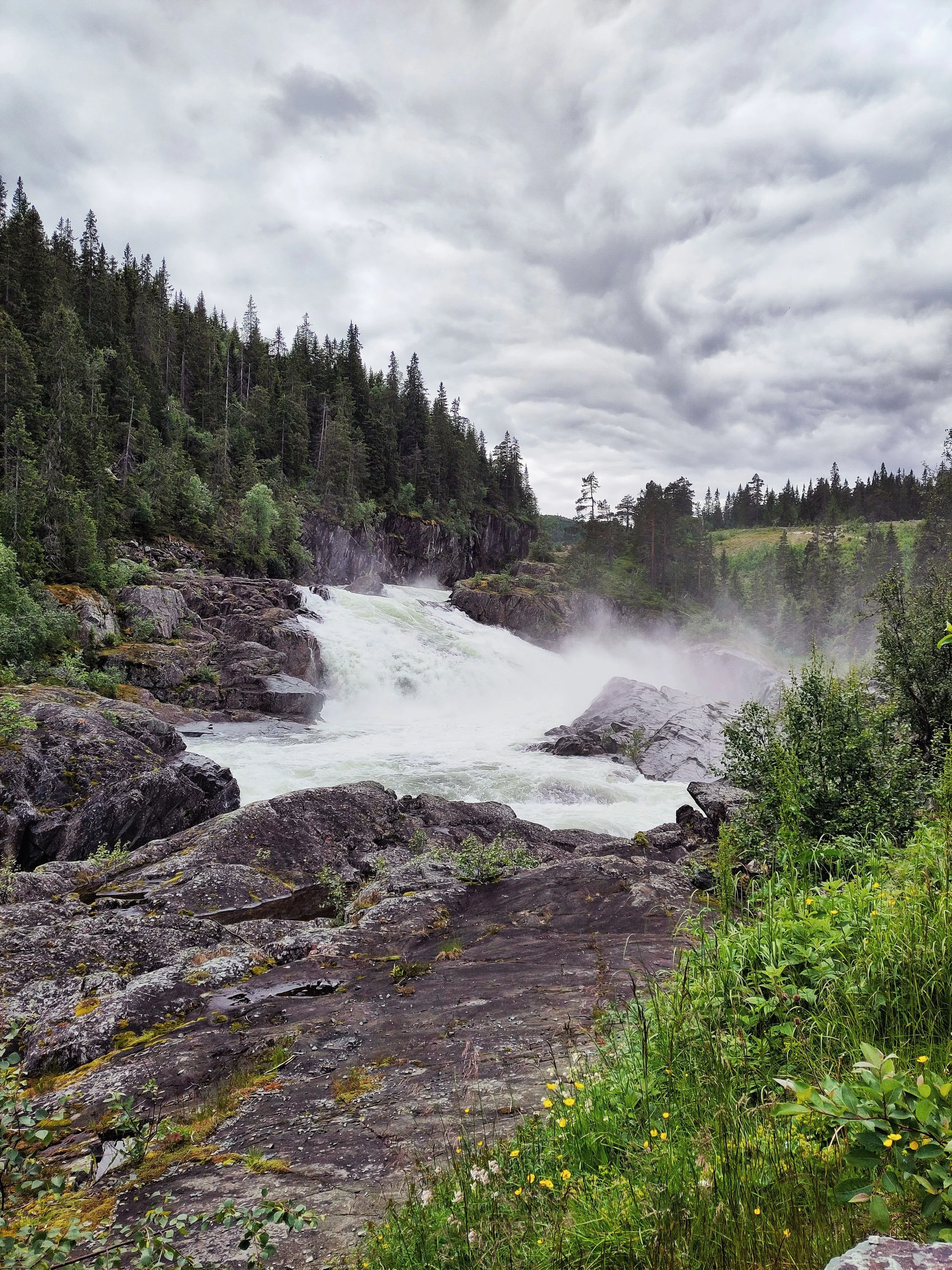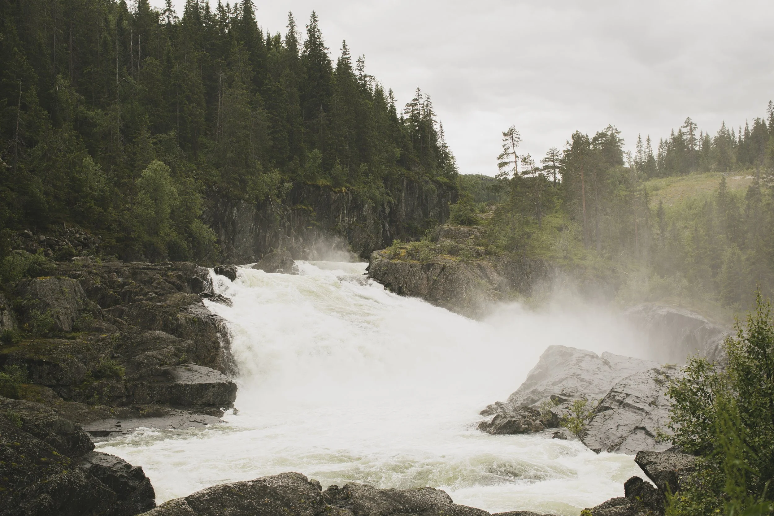 In der Nacht hatte es stark geregnet und das Zelt war gut nass – toll, dass unser Tarp den Bereich vor dem Zelt so trocken gehalten hatte… Wir hatten ein frühes Frühstück, bauten alles ab und begaben uns auf die vorletzte Tour. Tatsächlich war es auch die letzte Tour mit kleinen Zwischenstopps und Bildern. Wir nahmen noch eine Kurve, um den Vøringsfossen zu sehen. Einen super steilen Wasserfall, der eine gut besuchte Touri-Attraktion ist. Und fuhren dann in das kleine Örtchen „Geilo“, um unserem Auto noch einen Energieschub zu verpassen, bevor es in Richtung Deutschland ging.
