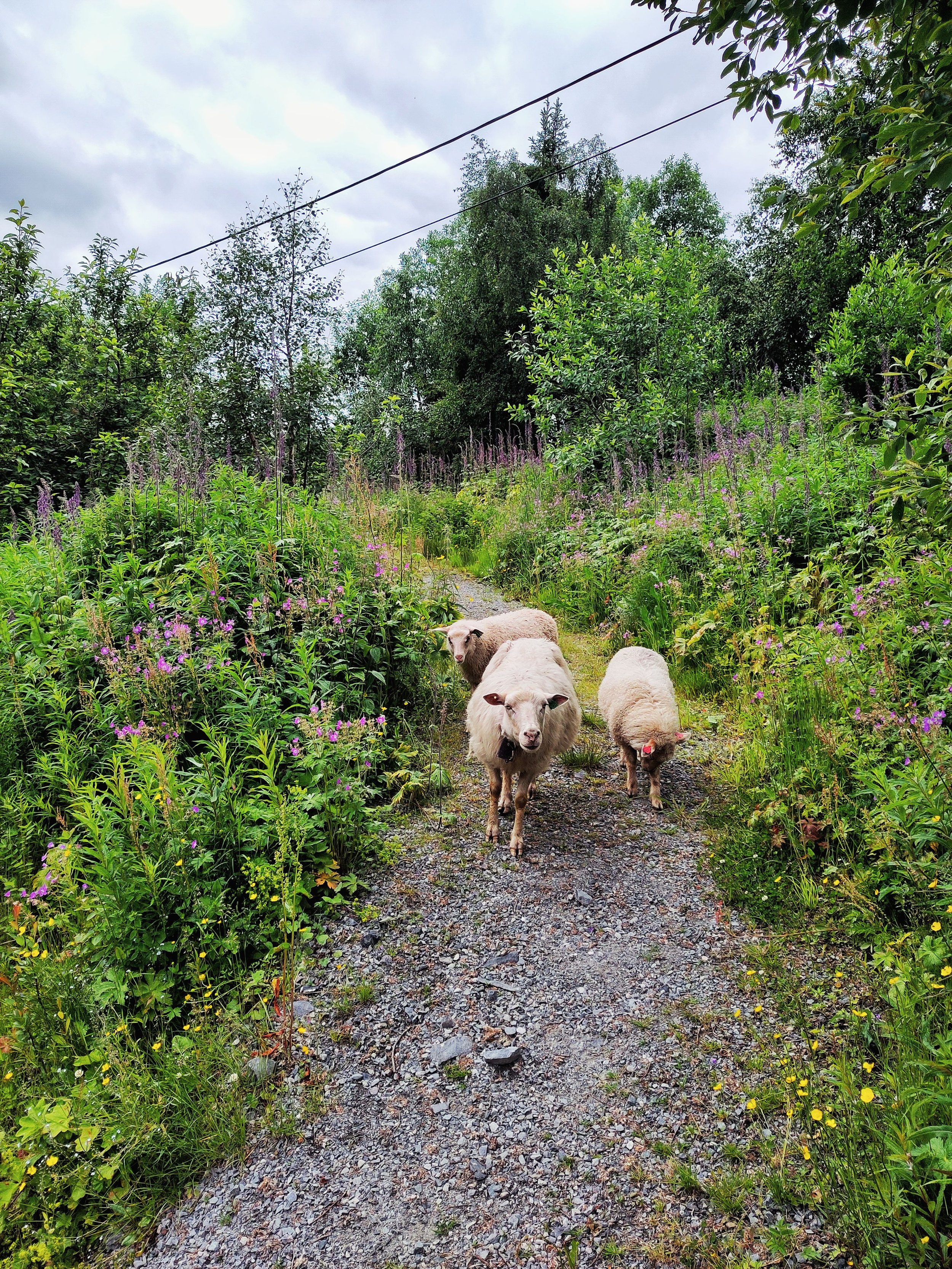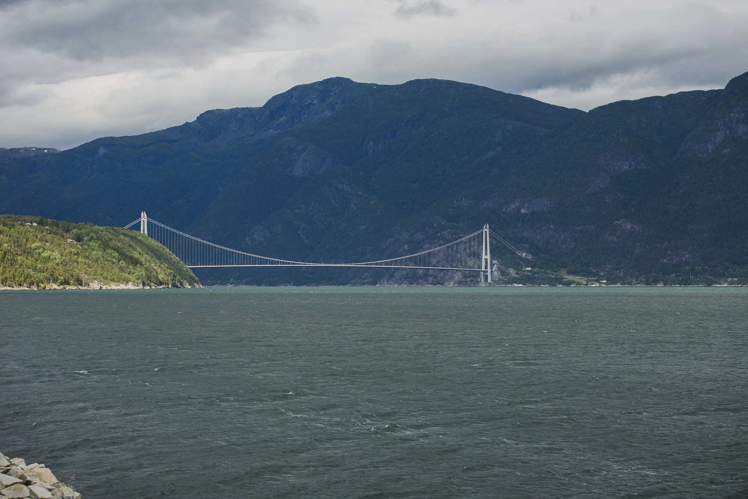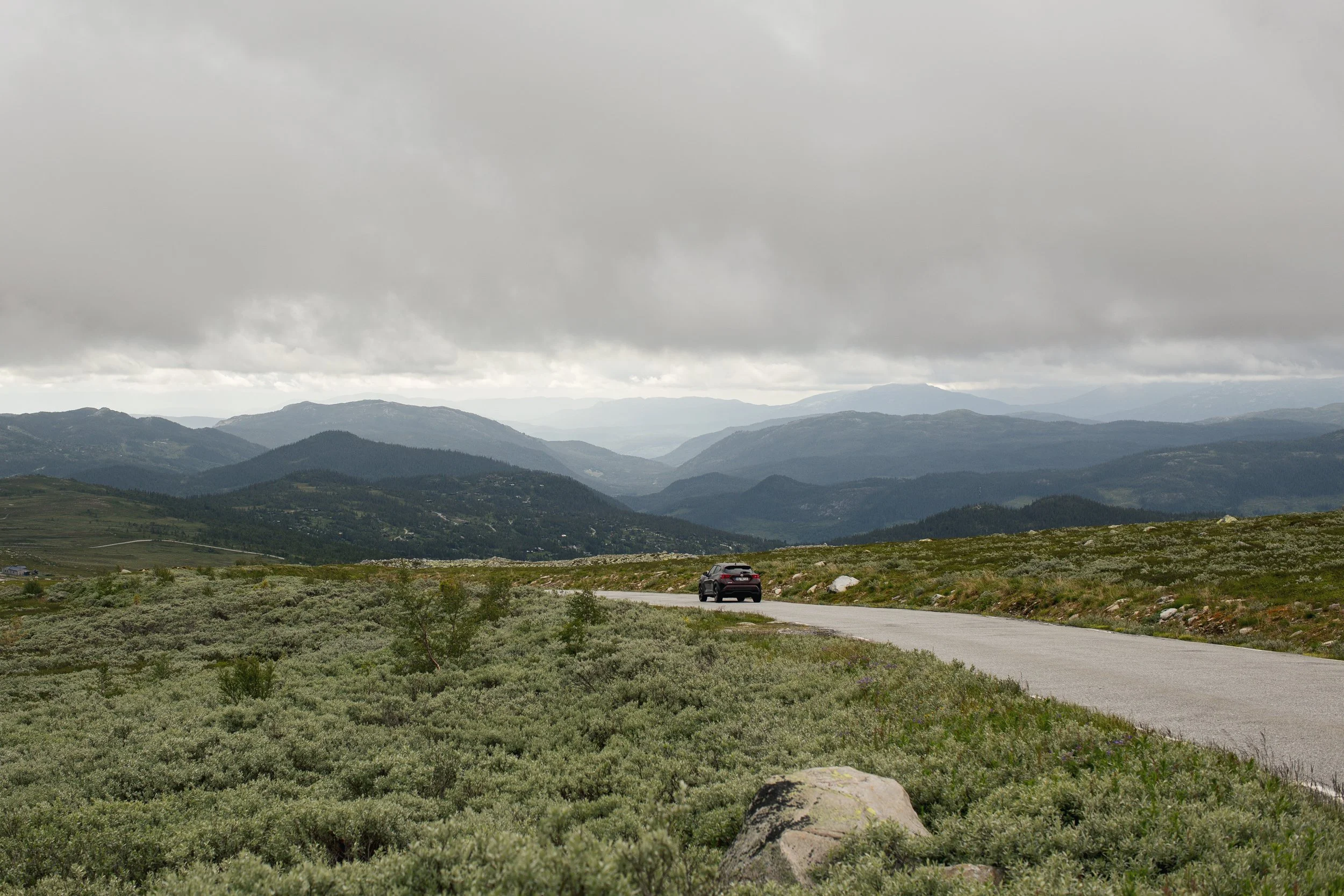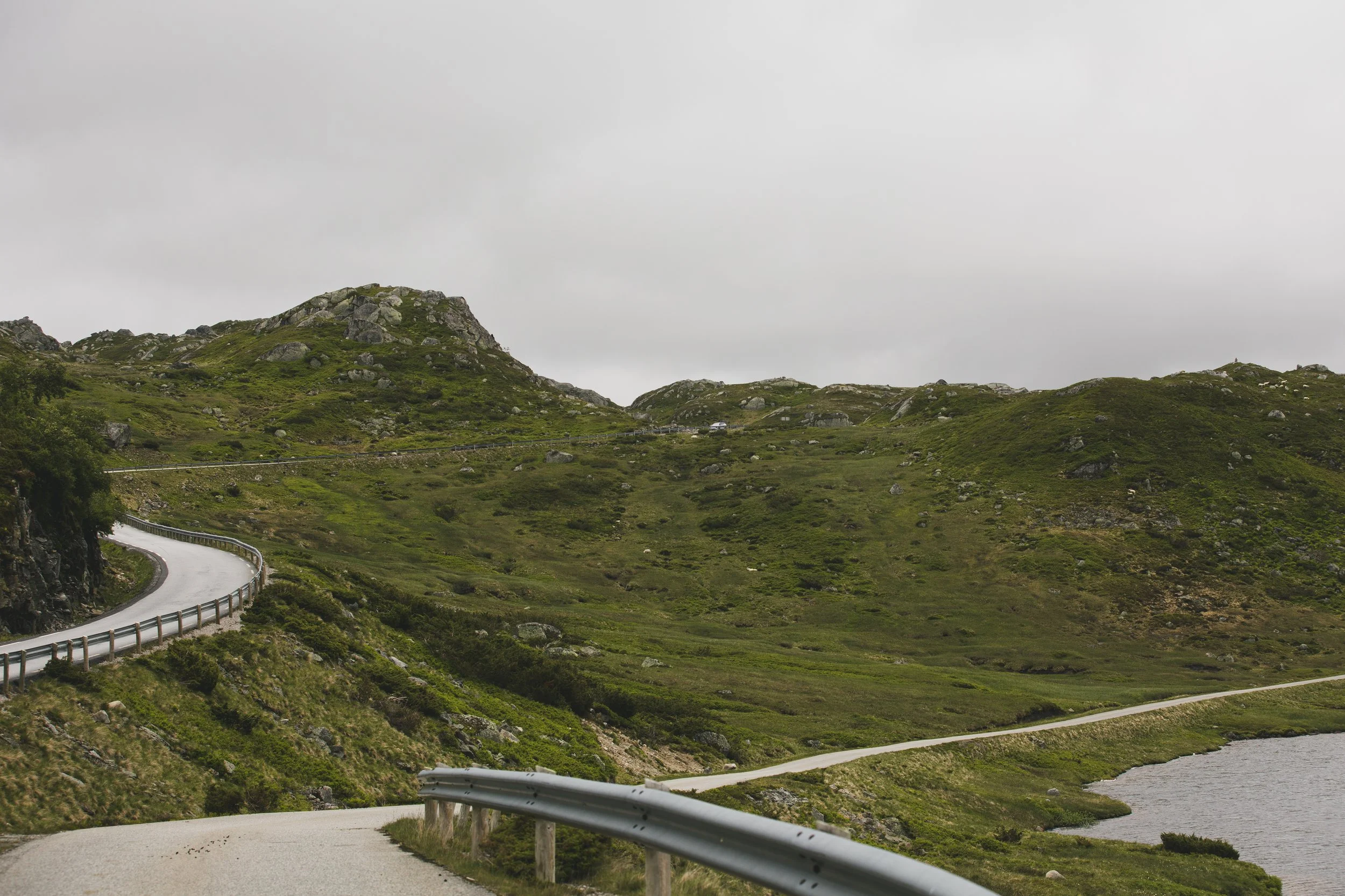 Auch hier lebten unzählige Schafe nahe der Straße, überall konnte man ihr Klingeln hören. Und die Landschaft war einfach nur zauberhaft. Weite, grüne Hügel, die sich sanft hoben und senkten. Scharfkantige Felsformationen, die emporragten. Wir genossen die Aussicht und die Ruhe, wenn der Verkehr mal etwas stiller war, und machten dann in einem kleinen Ort einen Ladestopp, bevor es weiter Richtung Stavanger ging.