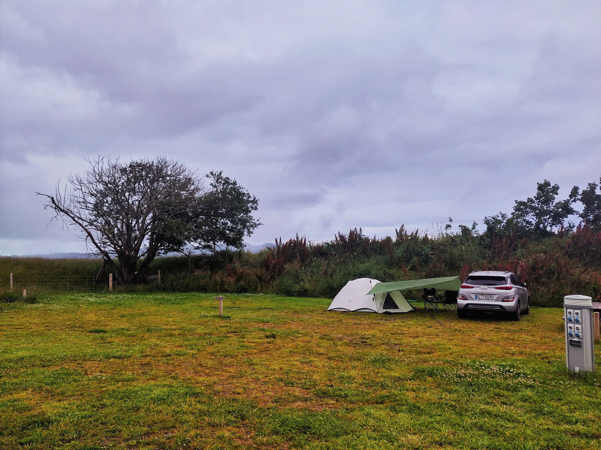Die Kombination aus Auto und Zelt ist nicht gut. Entweder der Boden ist zu hart, oder nicht fest genug. Auf manchen Plätzen darf man nur mit einem Wohnwagen stehen oder nur mit einem Zelt, aber nicht mit einem Auto. Die beste Variante scheint doch noch immer ein Camper zu sein. Ein kleiner, damit man auch wirklich einen Platz findet.