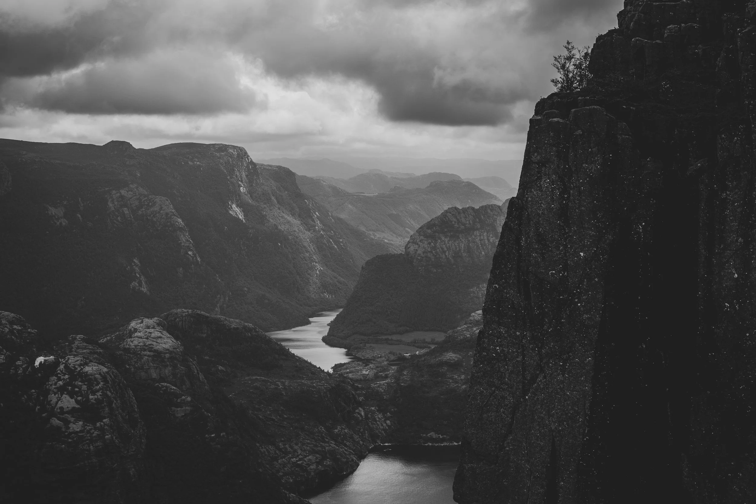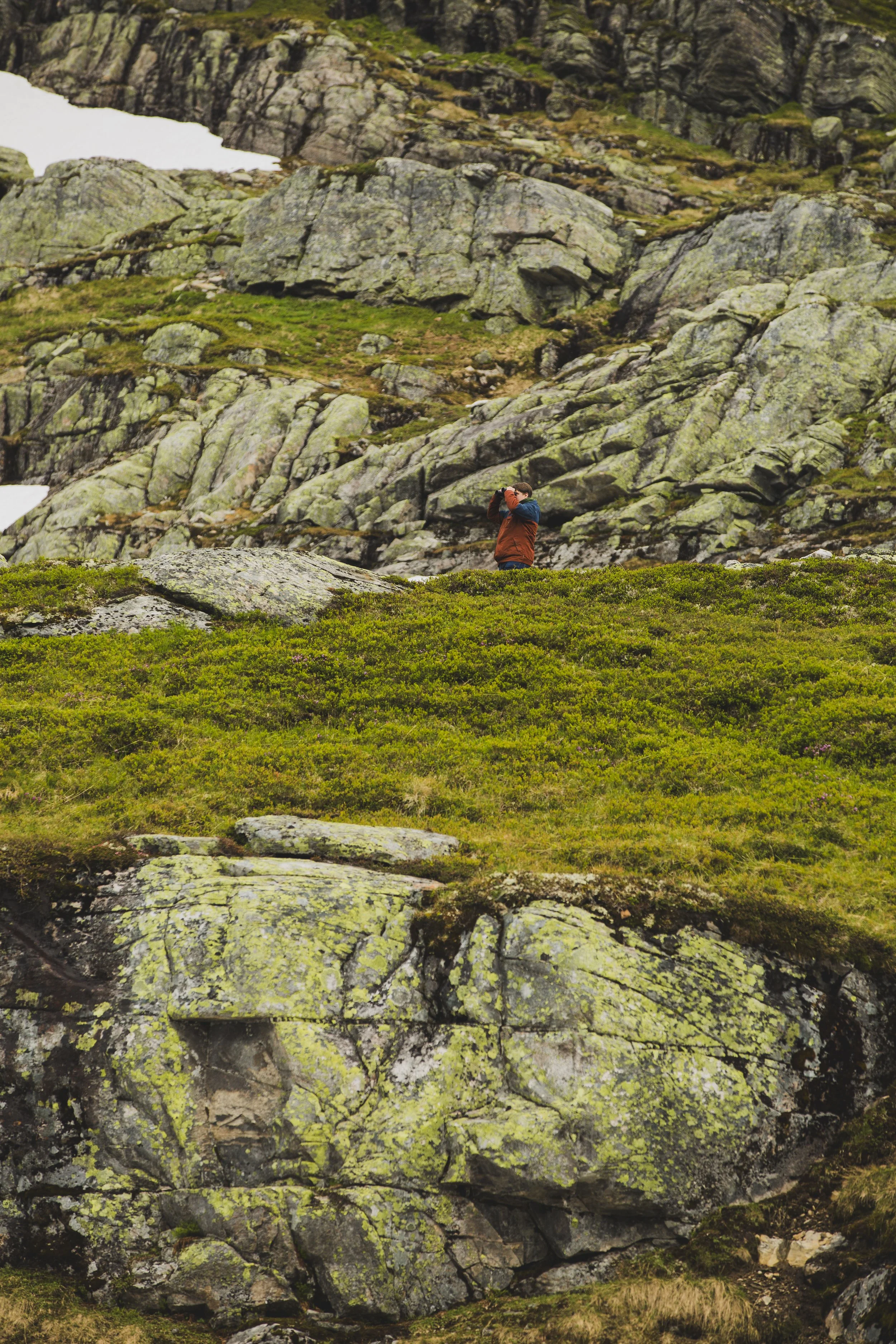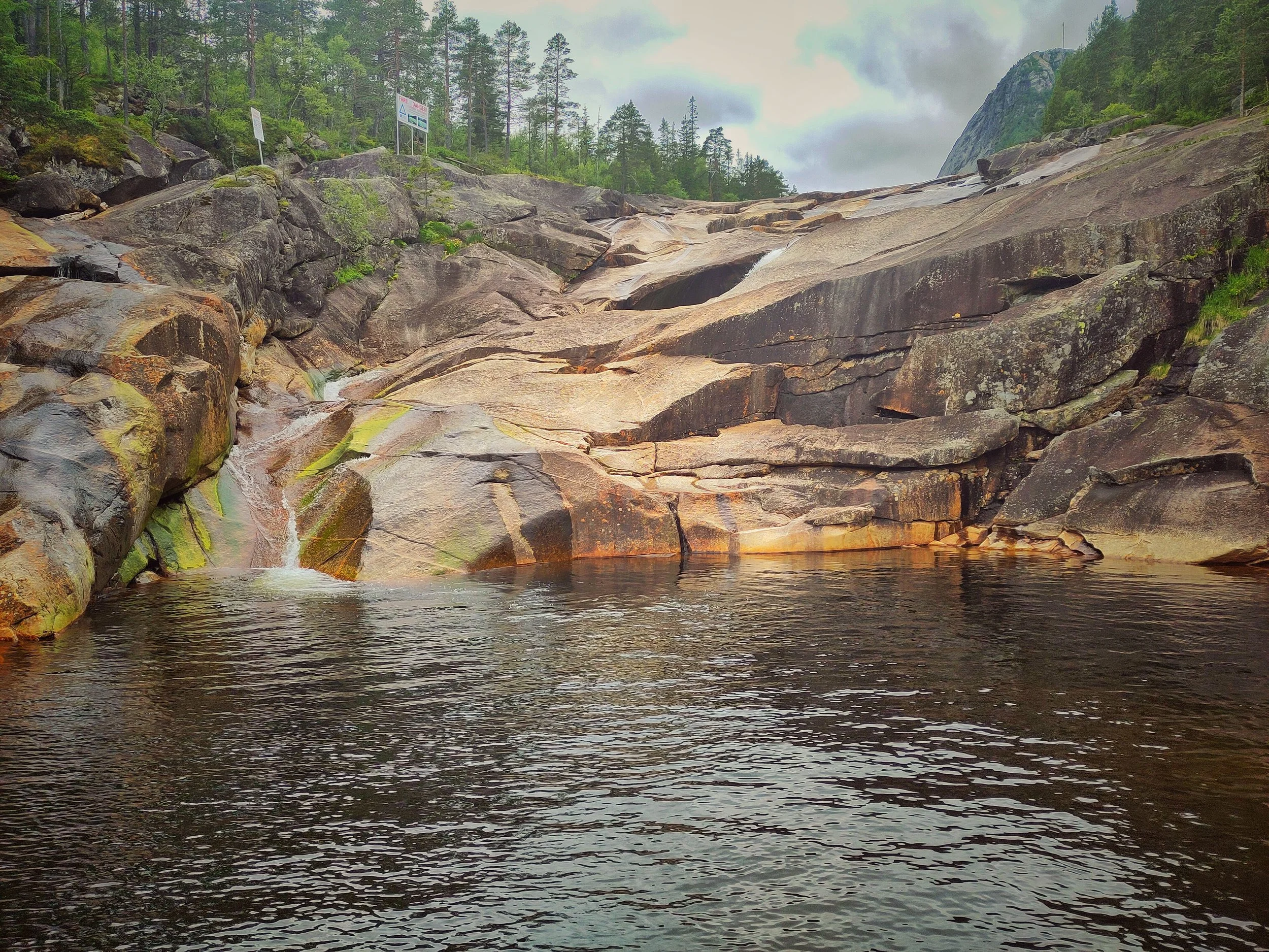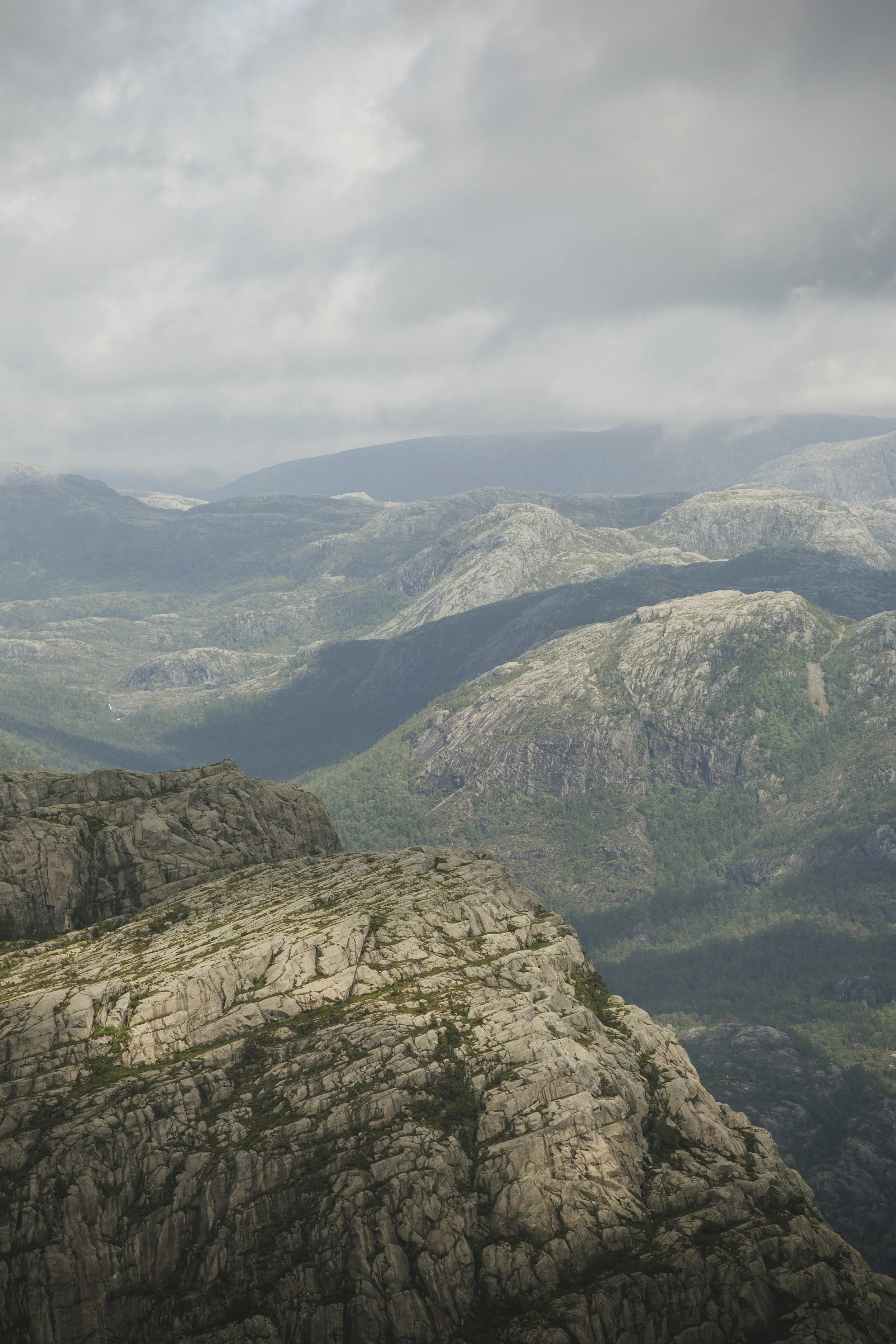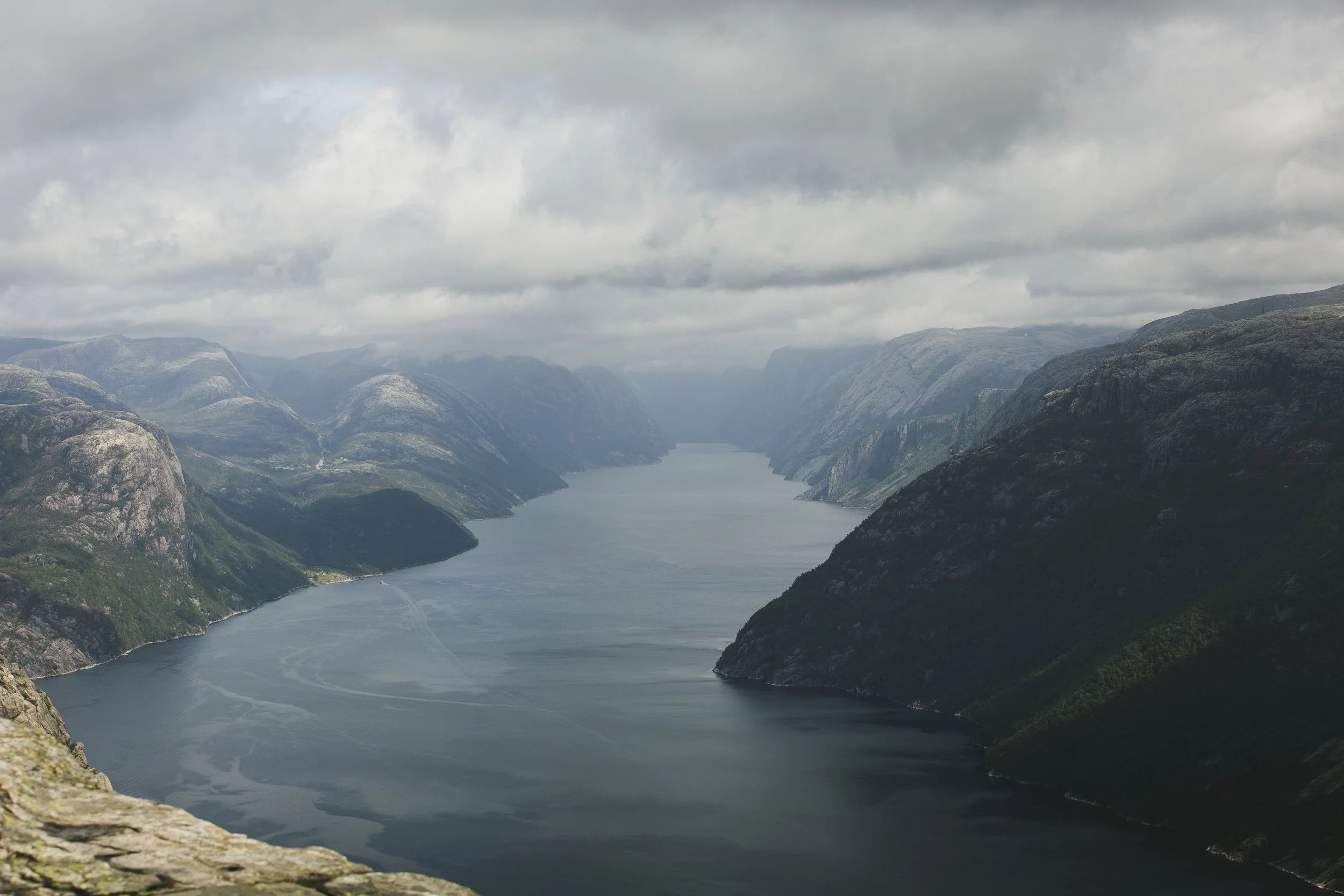 Und nun lasse ich nochmal die Moralapostel raushängen, denn als wir da so saßen, mit den anderen bestimmt 400–500 Menschen, bildete sich eine Schlange bei dem besten Fotospot. Ganz gesittet wartete jede Person auf ihren Moment im Rampenlicht, und manche waren der Ansicht, man könnte das ja besonders nutzen und für großes Aufsehen sorgen. So machte z.B. ein junger Mann dort, an der Spitze des Preikestolen – wo es senkrecht 604 Meter in den Abgrund geht – einen Handstand. Ein Raunen ging durch die Menschen, erschrockenes „clutching my pearls“-Atmen. Das reichte dem Typen jedoch nicht, er schob direkt noch einen Backflip hinterher, für den er tatsächlich von manchen Anwesenden einen Applaus erhielt. Und ich saß da auf meinem Stein und motzte vor mich hin, denn was der Jungspund da gerade gemacht hatte, war nicht nur unfassbar gefährlich, es war auch dermaßen dumm und egoistisch. Ich bin nicht auf einen Berg gestiegen, um dabei zuzusehen, wie ein Mensch in seinen Tod stürzt, danke, nein. Aber leider ist man an solchen Plätzen dieser Dummheit anderer ausgesetzt, und das macht mich echt sauer. Immerhin waren auch Kinder an diesem tollen Platz, und da Kinder ja nicht unbedingt für überlegte Handlungen bekannt sind, würde ich solch riskante Aktivitäten wirklich unterlassen… Ich hoffe, er hat ein tolles Insta-Bild dadurch bekommen und keine Menschen auf dem Gewissen, die dachten, sie könnten so einen Mist nachmachen.