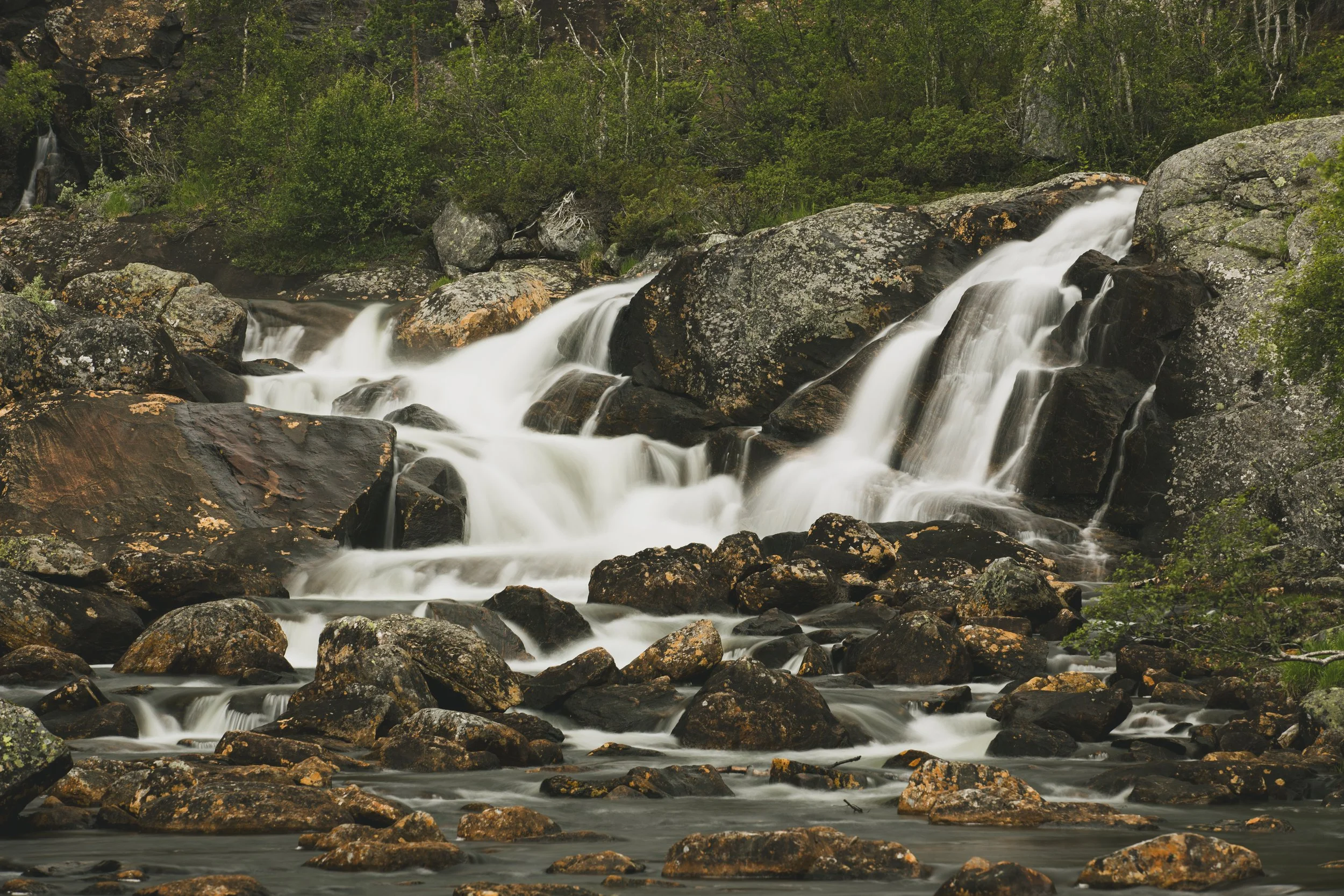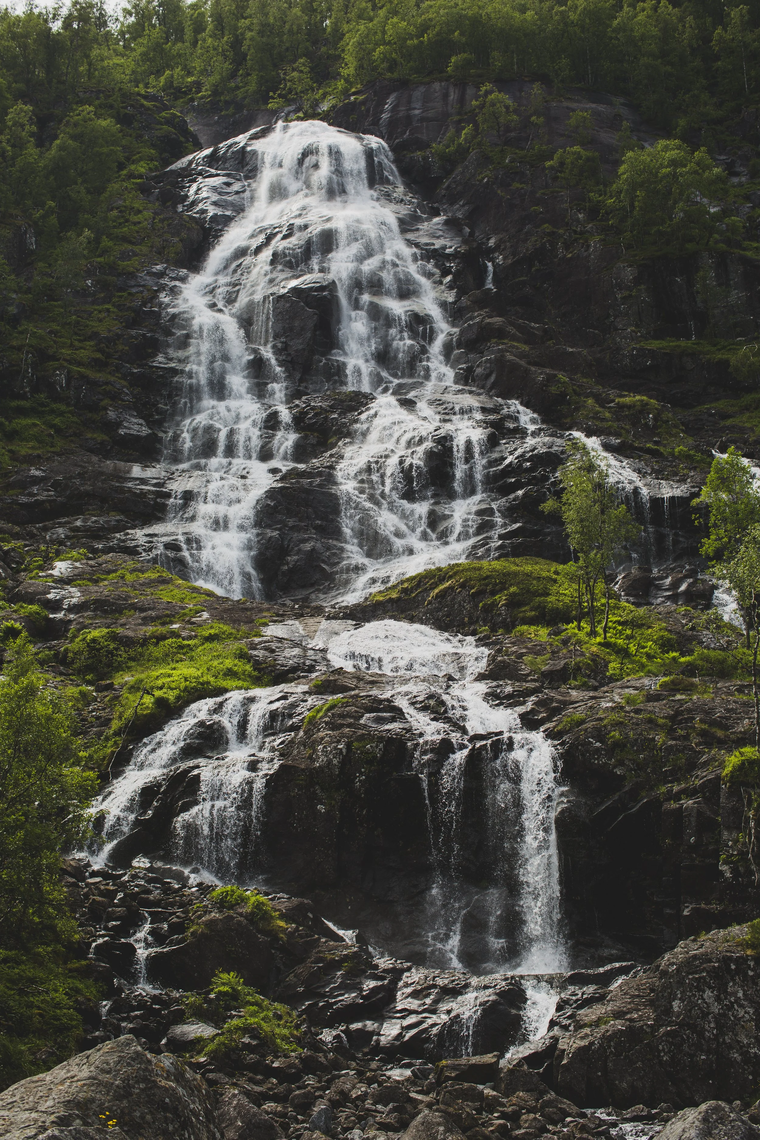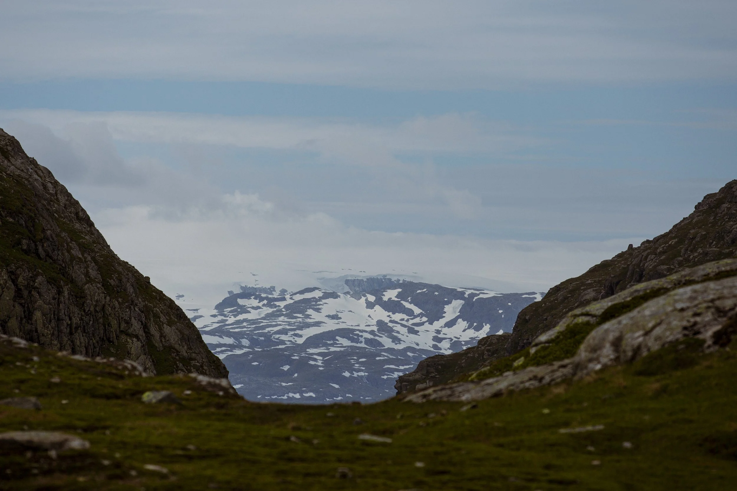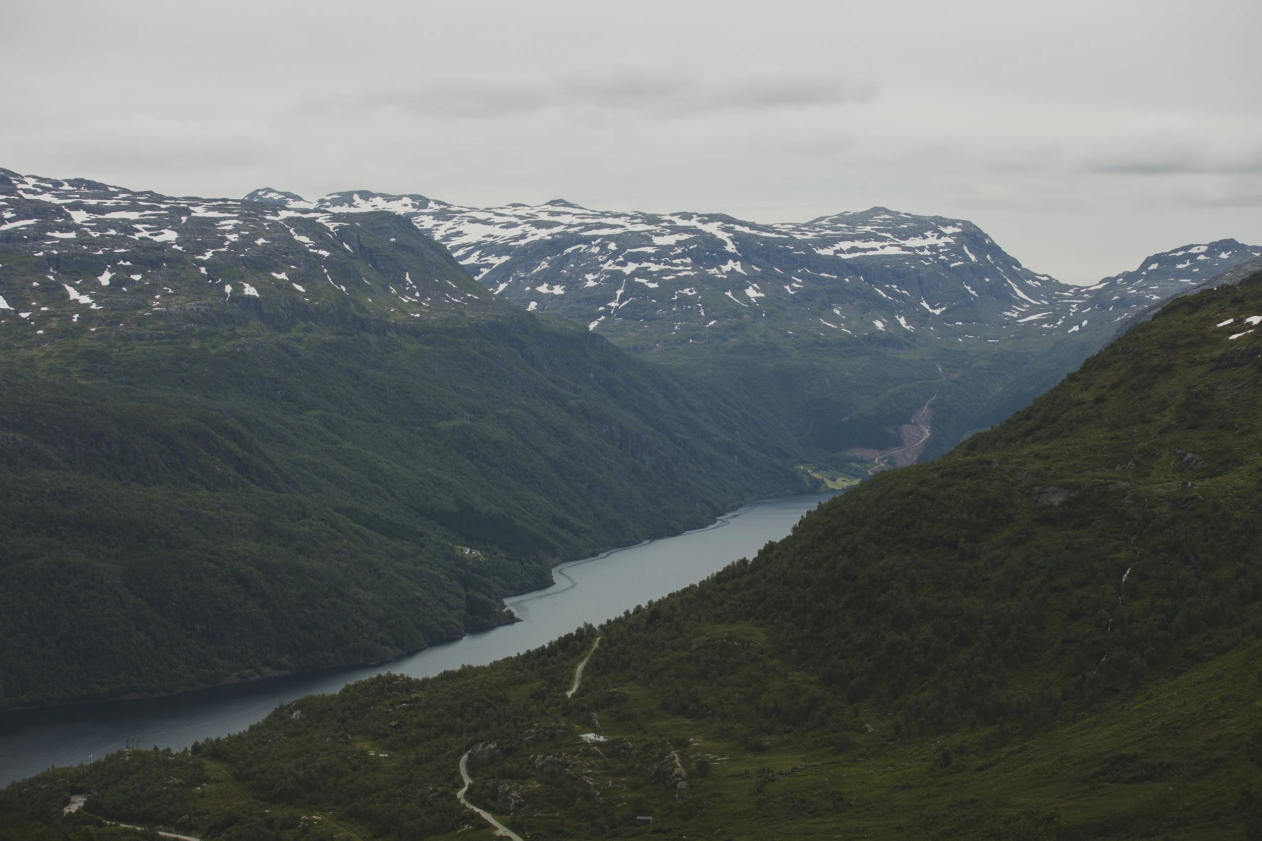 Nach der dramatischen Dusche, roch das Auto immer noch nach Fisch und jetzt zusätzlich noch nach nassem Hund. Aber egal, wir fuhren weiter durchs Land. Bestaunten Berge, Hügel, Seen, Fjorde, Täler und Felder. Unser letztes Ziel war der weitest entfernte Punkt von Zuhause, bevor wir wieder umdrehen würden. Es handelte sich um einen Gletscher, im Folgefonna-Nationalpark, den Buarbreen. Auf dem Weg dorthin sind wir vorbei am Flesefossen, einem Trinkwasser-Wasserfall, über die Turistveg: Røldalsfjellet Scenic Route und an dem bekannten Låtefossen gefahren.