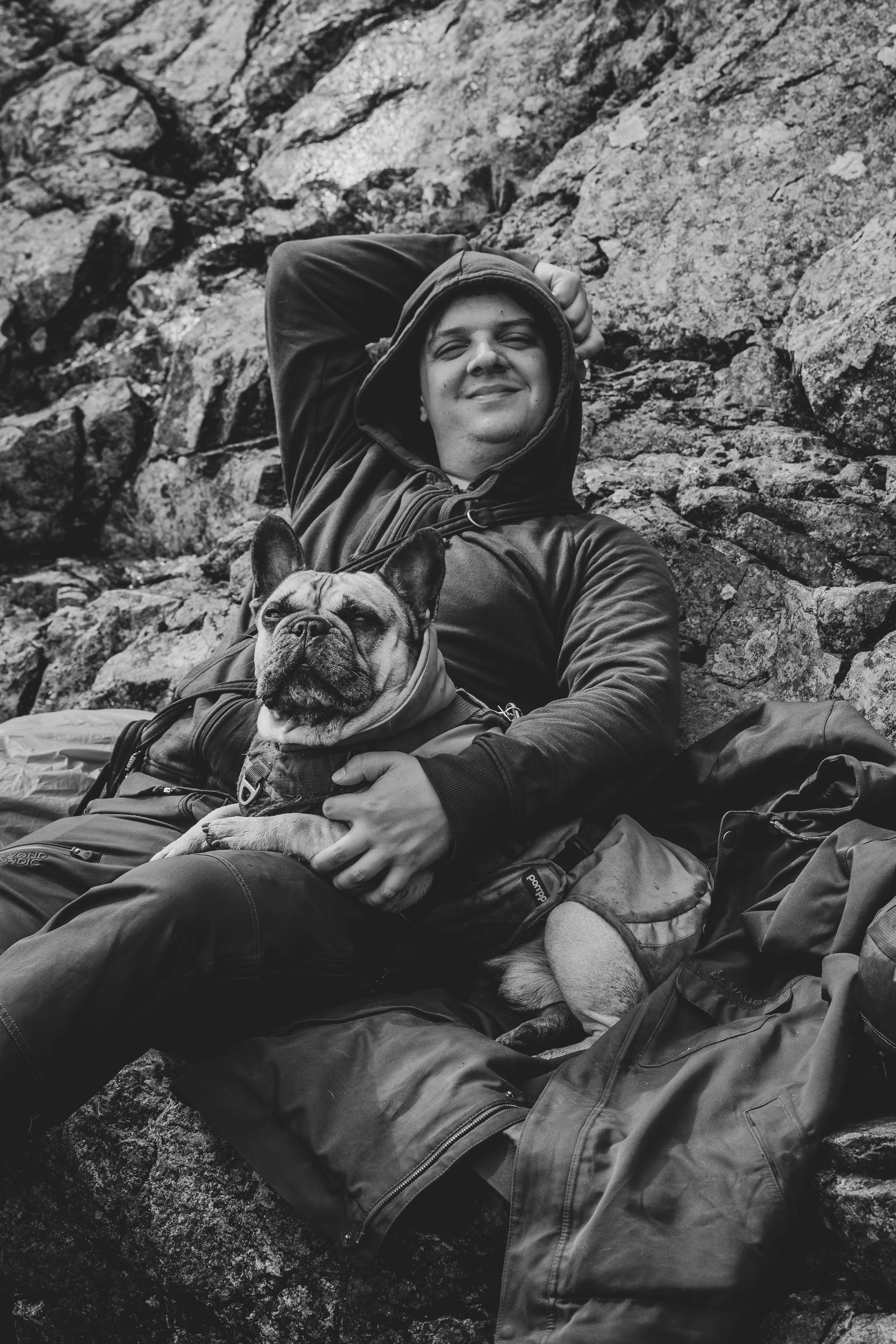 Nachdem auch Atlas und ich unseren kleinen Starmoment hatten, begaben wir uns wieder langsam nach unten. Und tatsächlich rollte eine dicke Regenfront ein, die uns den ganzen Abstieg begleitete. Und auch hier muss ich sagen: Ich verstehe, warum Unfälle passieren, denn das Wetter war so schnell umgeschlagen, dass der Weg kaum noch erkennbar war und wir wirklich aufpassen mussten, wo wir hintreten, um nicht abzurutschen.